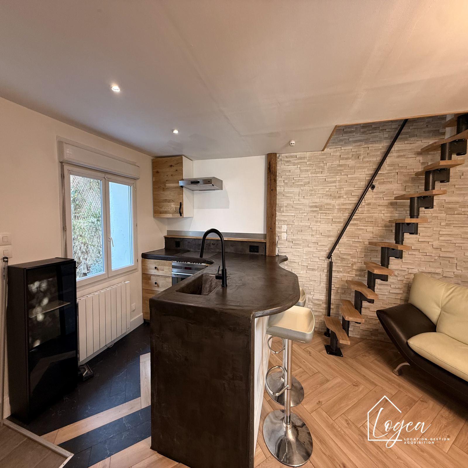 En zone NON inondable, profitez d'une terasse intimiste. La maison MEUBLÉE se compose, au rez-de-chaussée, une entrée donnant sur un salon/séjour avec cuisine ouverte aménagée et équipée (plaque, hotte, four, réfrigérateur et lave-vaisselle). Au premier étage, un salle d'eau avec WC et machine à laver, un espace bureau pouvant servir de chambre avec dressing. Au dernier étage, une chambre lumineuse avec placards.